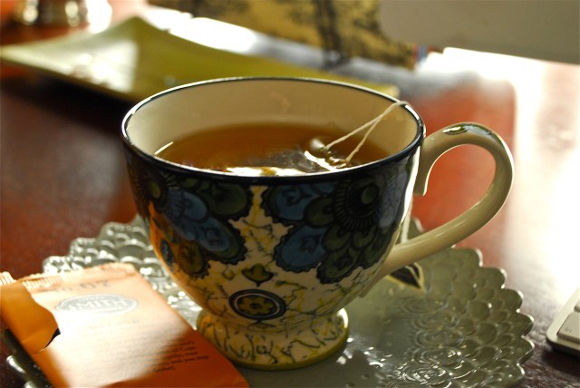 Tea, tea, tea!  Chamomile and mint, together.  Trust me, it’s good and soothing.