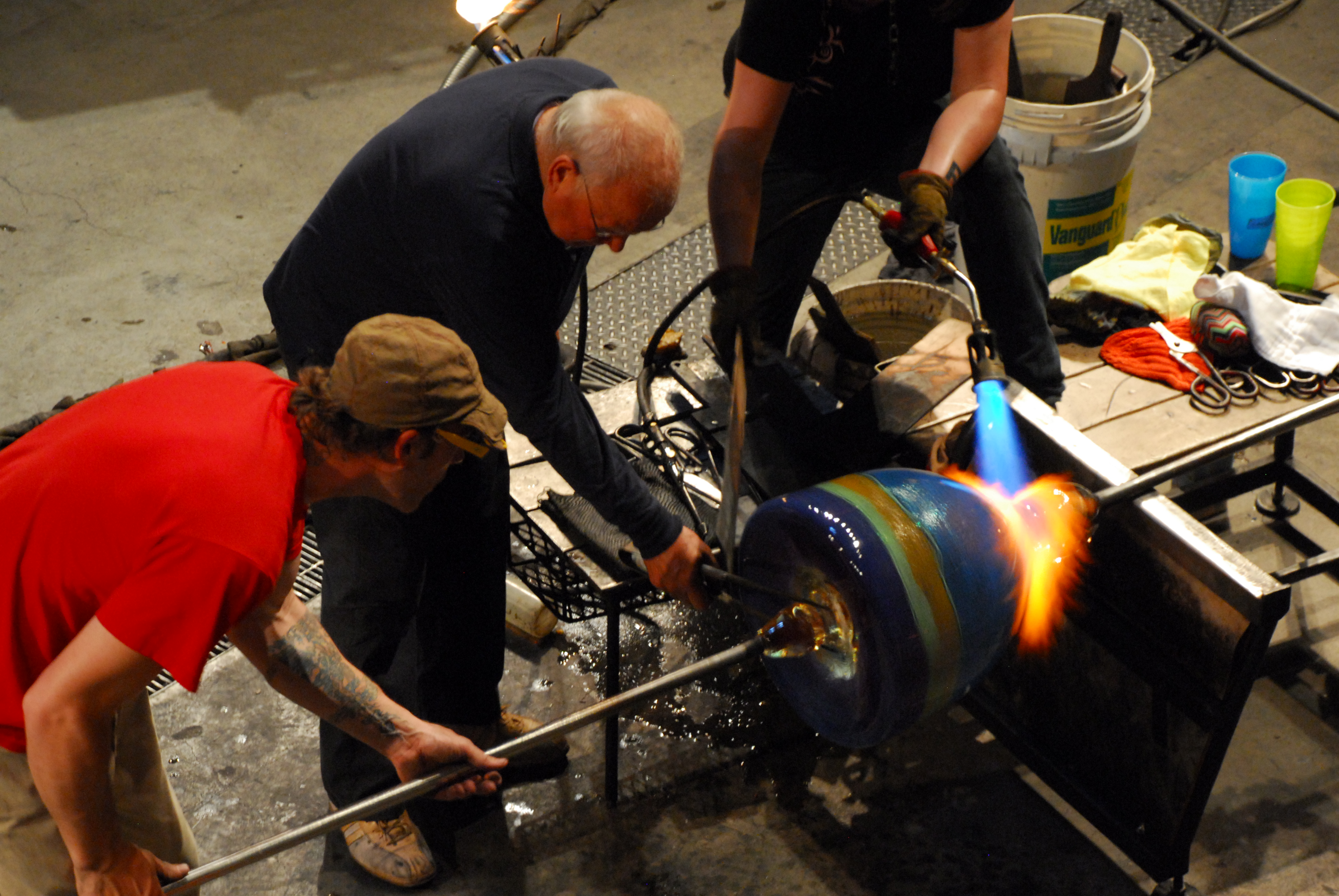 I was so thrilled to be able to see Italian glass blower Maestro Lino Tagliapietra at the Museum of Glass in Tacoma, where he was completing a week-long visiting artist program. His work is stunningly beautiful and so vibrant, Dale Chihuly refers to him as “perhaps the world’s greatest living glassblower.” I especially love his pieces where the glass canes are well defined and swirled into soft, fluid patterns. Each year, Tagliapietra generously donates a work of art to the JDRF Seattle Guild Gala. And each year, his glass piece is one of the highest selling live auction items. We are so lucky to receive his gifts. If you look at the picture above closely, you’ll see a multi-colored glass case with the scissors. That’s right…his safety glasses are Missoni. Pure Italian style! Can’t wait to see what piece, blown this week, will become part of the Museum’s permanent collection.