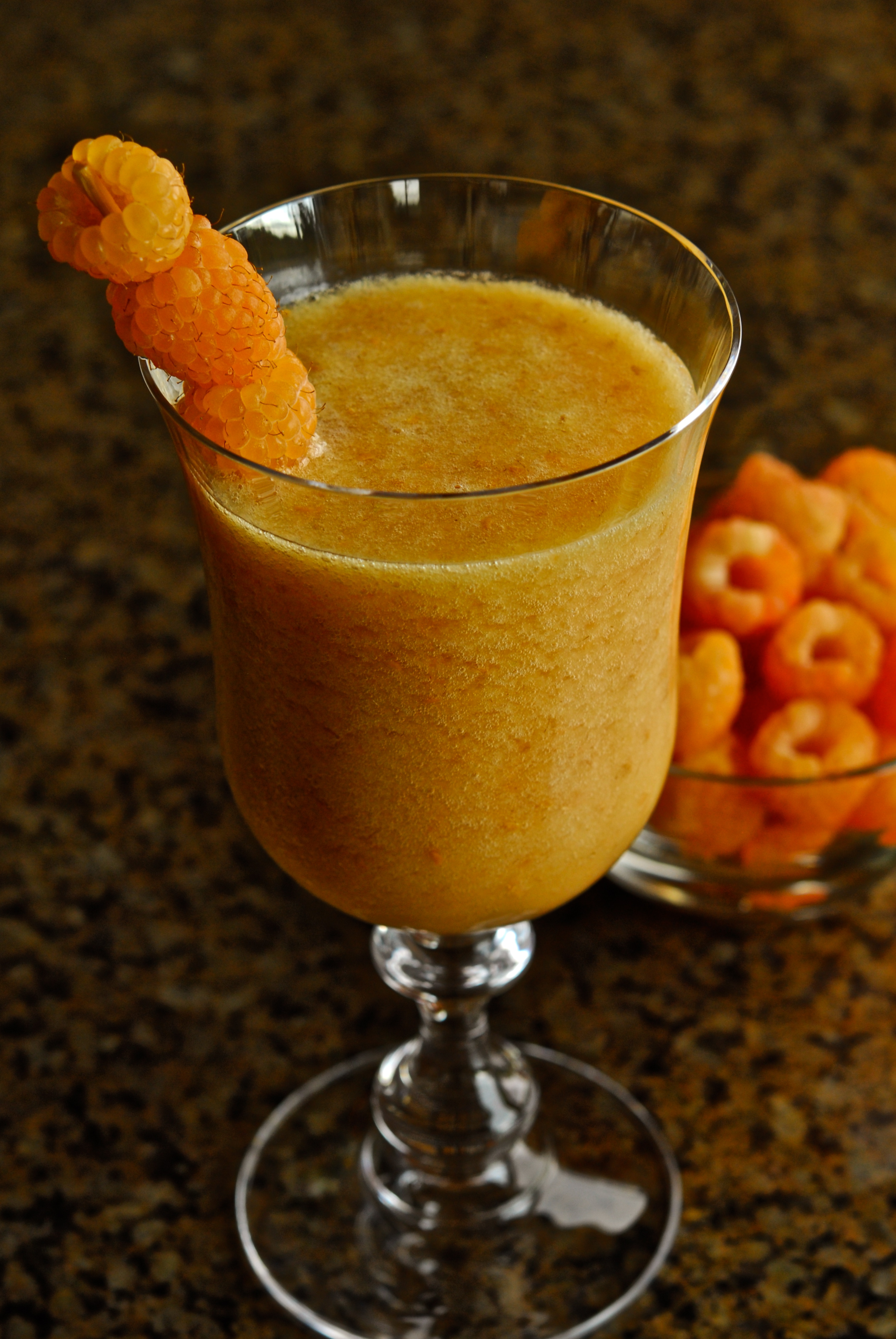 While I do like daiquiris, I’m not fond of overly sweet ones, or any other cocktail for that matter.  So when I saw golden raspberries at the market today I quickly scooped up a couple of pints.  The traditional daiquiri created in 1898 in the town of Daiquiri {near Santiago, Cuba} is shaken, not blended, but come on…a shaken daiquiri?  I say no way!  It’s blended or nothing, baby.  Hemingway made this drink famous but since its creation people have taken liberties with the recipe, using spiced rum, a variety of fruit, blended, frozen, etc.  Here’s my recipe for a blended golden raspberry daiquiri.  You can sub out the fruit for whatever you like and adjust the amount of simple syrup to account for the sweetness of the fruit you use…or your taste buds  You pretty much can’t go wrong. So play around with the recipe and enjoy!