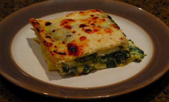 Well it’s not Monday and it’s not a pretty picture. But it is yummy lasagna. When I saw this recipe on the Bon Appétit website last week I knew I wanted to make for our meatless meal. But Mike’s brother was here to help with their mom’s move and he’s off pasta. So I pushed Meatless Monday back to today and made the lasagna for dinner. This is not a typical recipe I would make during the week because it has a lot steps and prep, but if you made the sauce and pesto a day advance, it would come together much quicker for a weeknight meal. Next time we have this I will only use half the pesto and half the ricotta. It was really rich, yummy but rich. Unless you’re in a real bind, don’t try to save time with store-bought pesto. The parsley and tarragon add a lot to the pesto giving the lasagna a great earthy brightness when paired with the spinach. Add making the pesto only takes about 10 minutes. A great salad with lots of fresh herbs, tomatoes and a quick vinaigrette rounded out the entree.
